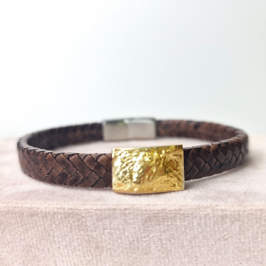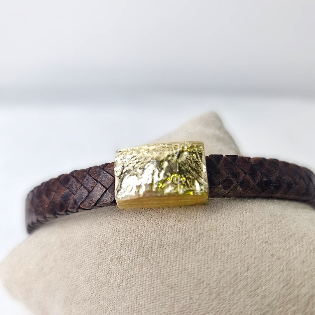 Deze leren armband wordt op maat gemaakt en afgewerkt met jouw unieke afdruk.